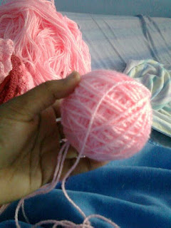 You think that I have only those much of yarn? No, I have a little more. But all are messy and tangled up. I am currently into this job of untying the knots and making them into lovely yarn balls. And my dad was kind enough to help me in the process.